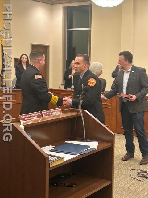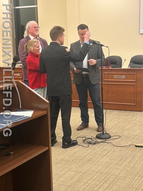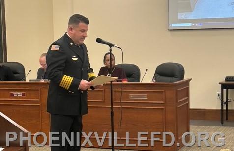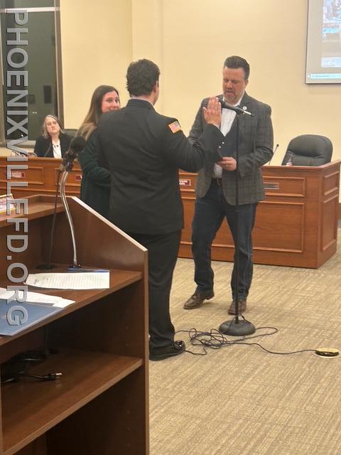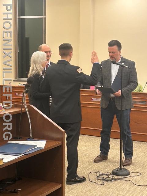 | During the February Borough of Phoenixville Council Meeting, Andrew Bucklin, Stephen Cini and Colin Finn were sworn in as full-time career firefighters, and Dr. Kevin Duffy was appointed as Medical Director. The group affirmed their oath of office with family and friends at their side. The oath was administered by Council President Jonathan Ewald.